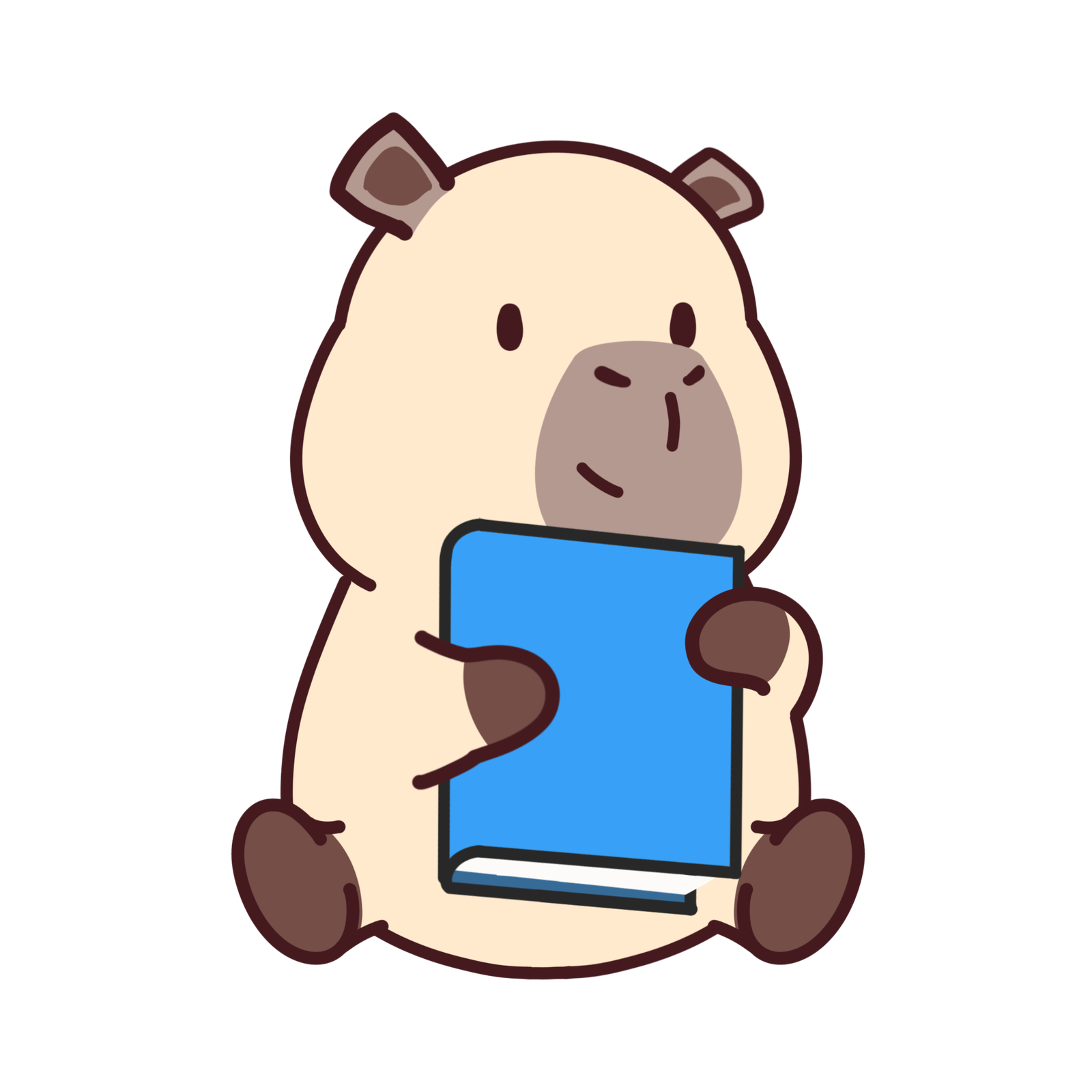 Coby hugs a big book with a cozy expression making it a charming sticker for readers students or anyone who loves study themed stationery. Durable for daily use.