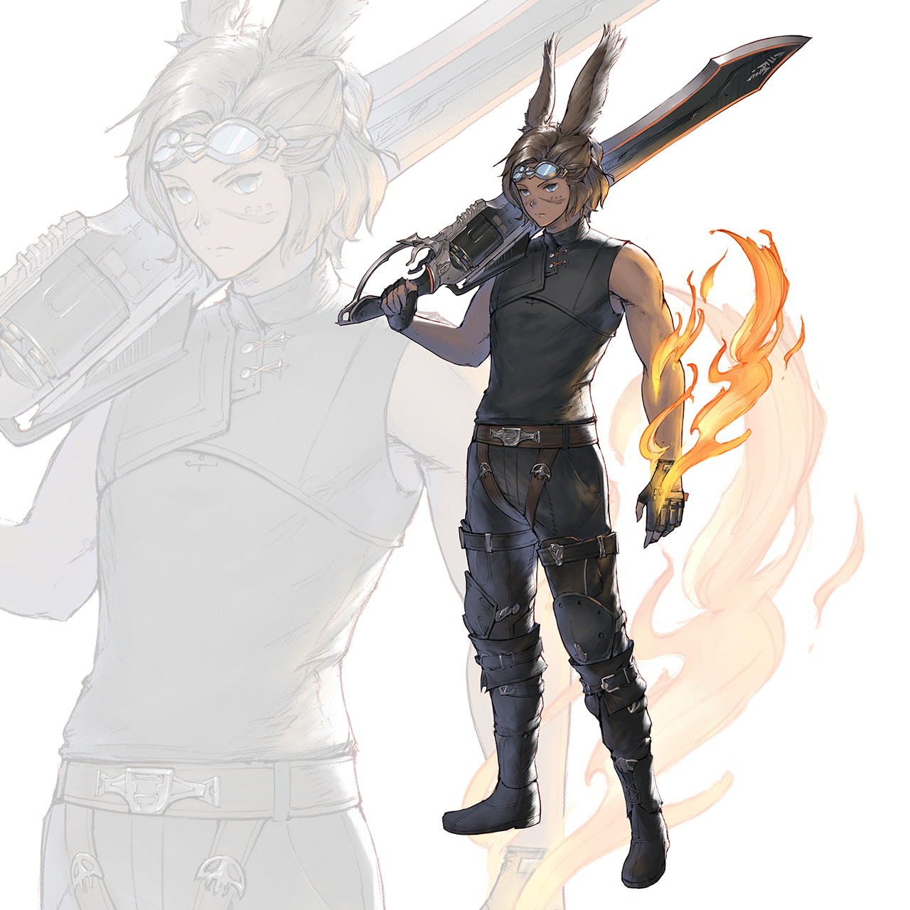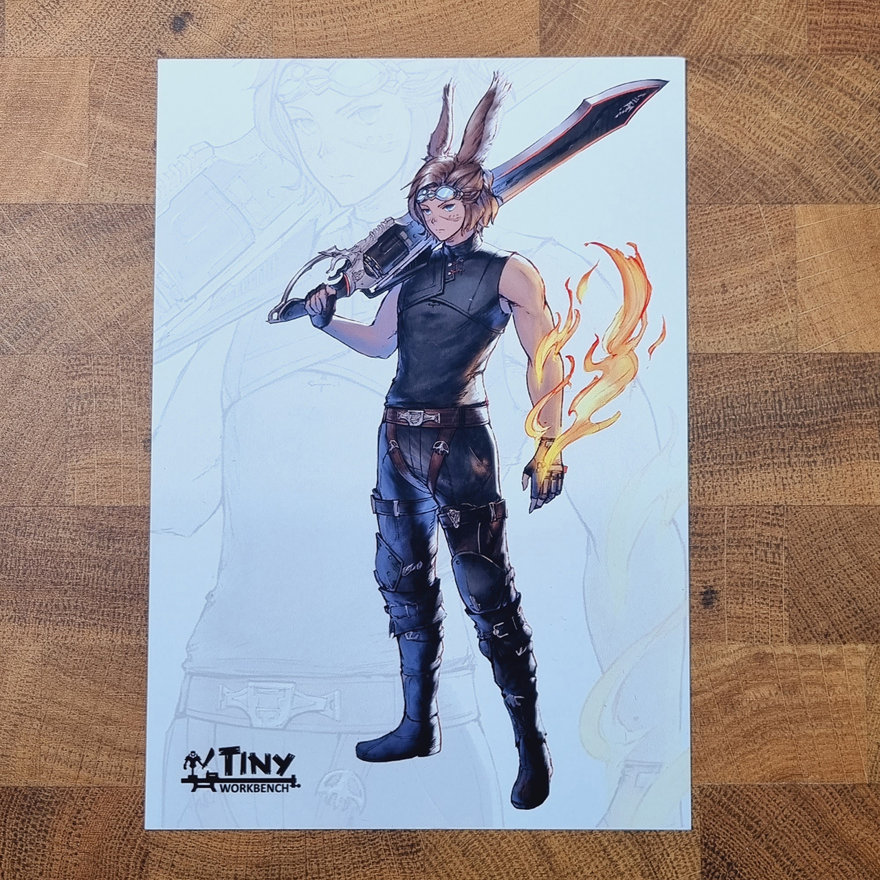 The Viera Gunbreaker radiates confidence and quiet ferocity. With a massive gunblade resting on his shoulder and flames coiling around his hand, he embodies the perfect fusion of discipline and raw power. His stance tells a story of countless battles where each strike is calculated, and each ember carries meaning. This artwork captures the spirit of a warrior who burns brightest in the darkest hour, rendered in stunning detail for your collection.